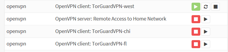 Operational. At some point 2 or 3 days in operation some pid file corruption occurs. the VPN's appear down(red). because the VPN's are on a group gateway the gateway goes down. in actuality they are running, I must use "ps auxw | grep openvpn" and kill them by hand. after that I am able to start them from the webui. For some reason it affects my openvpn server as it shows as down but I am able to VPN into the router. |