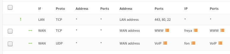 Sorry, I guess we got side-tracked after you mentioned issue #2837 in your first comment. This issue is about the "no translation address with matching address family found" alert I get. The error seems to be directly related to the port-forwarding rules, not the outbound rules. Below you will find all rules related to the Nextcloud forwarding rule shown in the screenshot above: rdr on pppoe0 inet proto tcp from {any} to {(pppoe0)} port $WWW -> $freya # Nextcloud access I got a similar set of rules for the VoIP forwarding. The alert is shown only for Nextcloud or VoIP, depending on which comes first. It happens on boot (see initial post) or when renewing IP (see my first follow up). I have not seen these errors before yesterday's update to 18.7.6 and also have not noticed a loss of functionality since. Still I would like to get rid of the alert. |