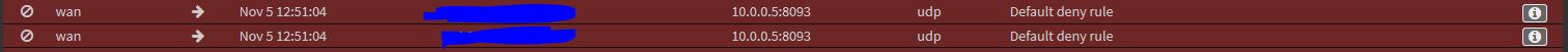 My firewall will log blocked traffic to LAN:8093 wich should be authorized to LAN:9987.