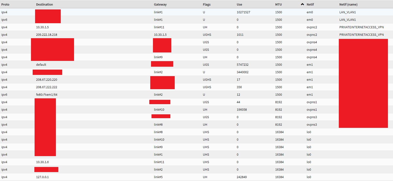 I think it may be a firewall rule issue with the pf firewall sending traffic over the proper gateway. It only works if all the outbound rules are deleted for regular WAN connections and only the VPN ones are left. The issue is probably something that is behind the scenes and probably hidden with another issue. I am starting to think I need to try manual policy based routing rules, if there are any suggestions. Just makes no sense at all that a OpenVPN config from when I started with OPNsense in 2017, suddenly breaks in 19.1 and worked perfect in every other OPNSense version since then. |