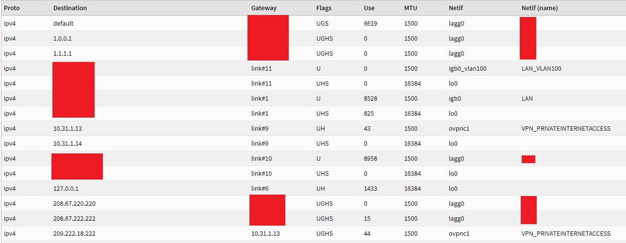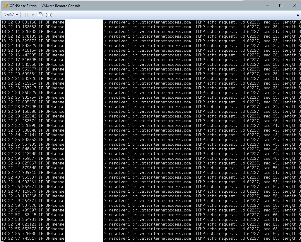 Somehow something is broken somewhere. If I go to ping interface diagnostics, chose the VLAN 100 or Private Internet Access Interfaces. Ping any address. It fails.