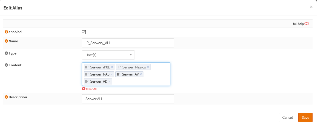 Host Alias with content of ip/net working/update well. Except situation in point 3.