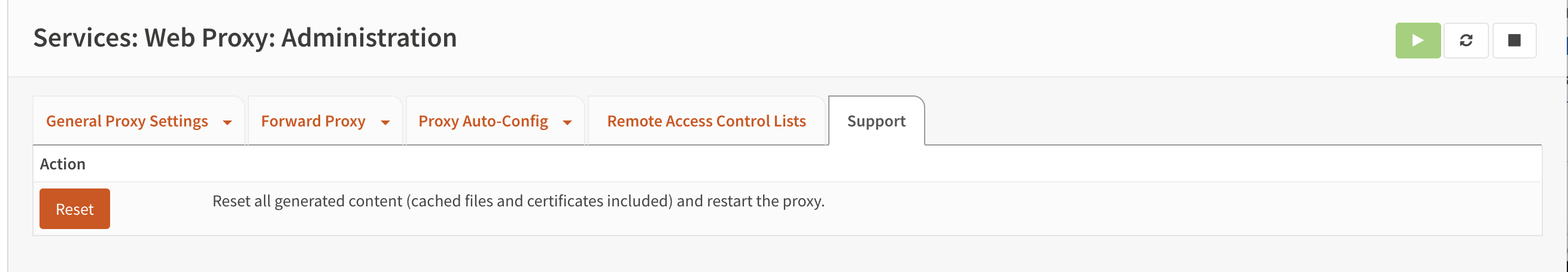 A button to reset / cleanup state (files in /var/squid) would be helpful here, both for the cached objects as ssl_crtd.