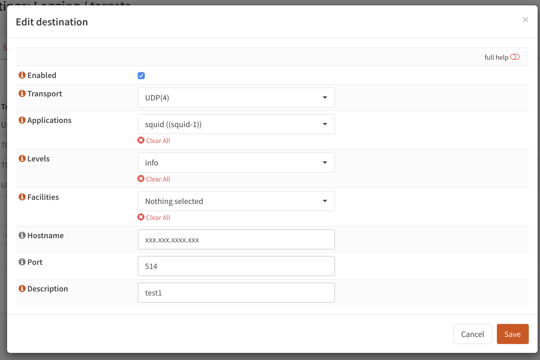 Add solution to specify custom options or add it as a specific setting as log option (just to specify ip, port and protocol udp/tcp)