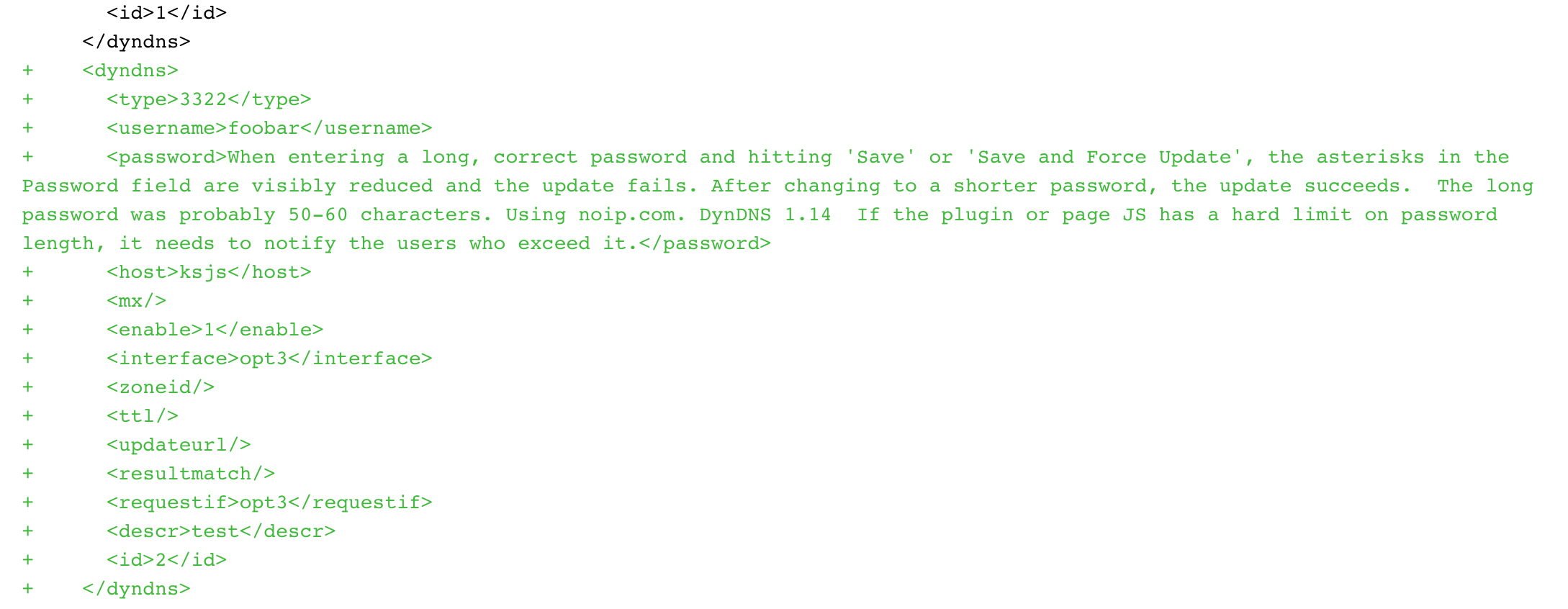 When entering a long, correct password and hitting 'Save' or 'Save and Force Update', the asterisks in the Password field are visibly reduced and the update fails. After changing to a shorter password, the update succeeds.