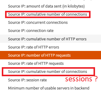 also if I select "Source IP: session rate", it is not possibible to select: Comparison and Session rate.