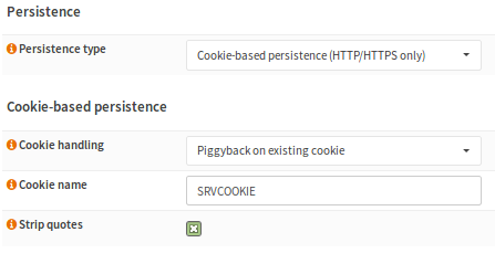 When enabling cookie-based persistence, the following HAProxy options will be added or changed: