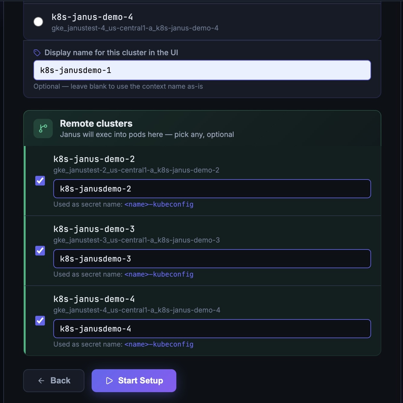 --namespace k8s-janus --create-namespaceRun the setup script — it walks you through everything interactively: