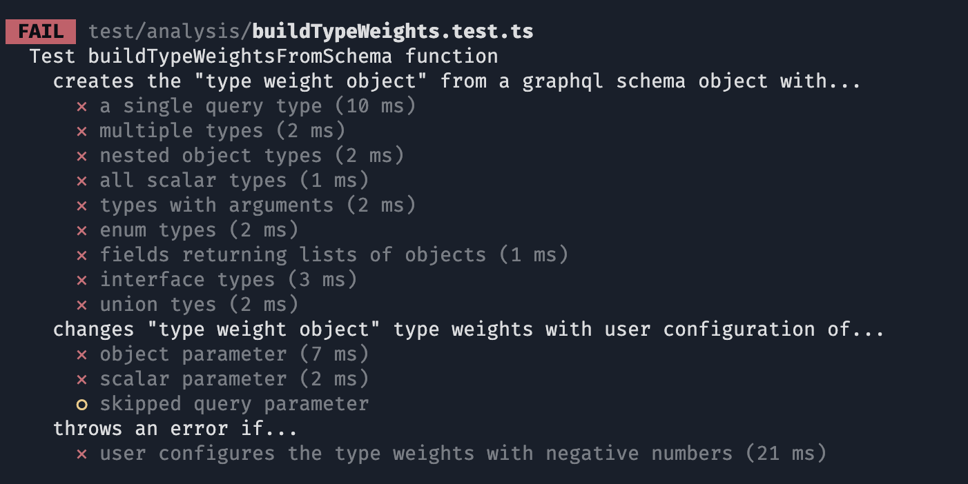 first. Iffirstis 3 than the type complexity of the reviews field in the query is 3, since it returns 3 Review objects in the response. The challenge is how to represent this in thetypeWeightsObject(if it should be). I currently have the expected field weight for theReviewtype set to1. Maybe this is something the complexity algorithm should deal with since it knows the argument passed in tofirst?Type of Change
