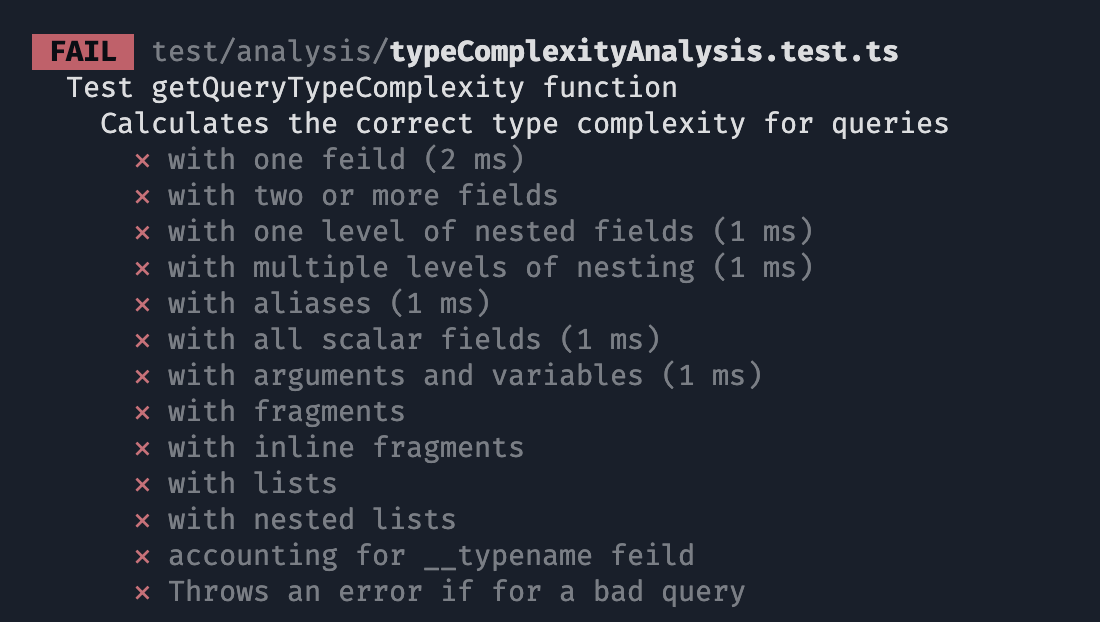 Minor but missing a 'e' in getQueryTypeComplxity and you can just use .toThrow() which checks if any error is thrown.