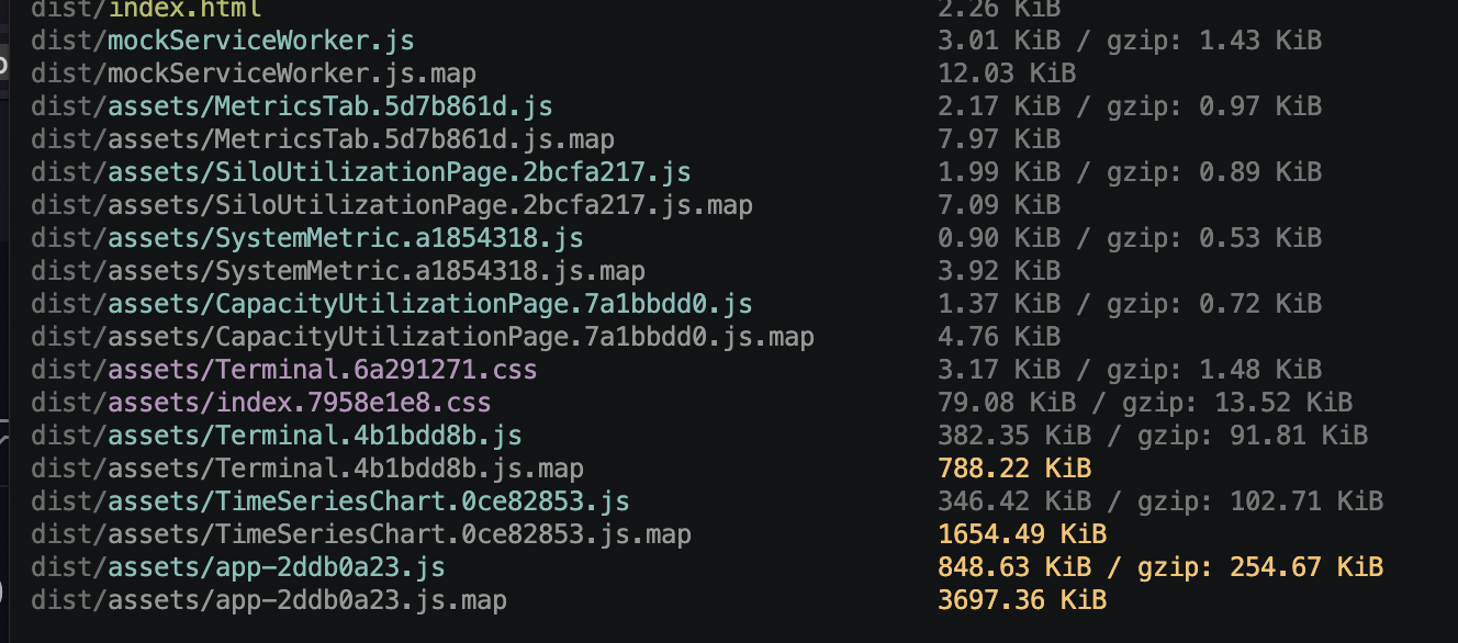 MetricsTab.jsfile split out from the mainapp.jsHowever, it turns out Vite is smarter than I thought, and once I added two more pages using Recharts, we got this: Vite knows all the pages have