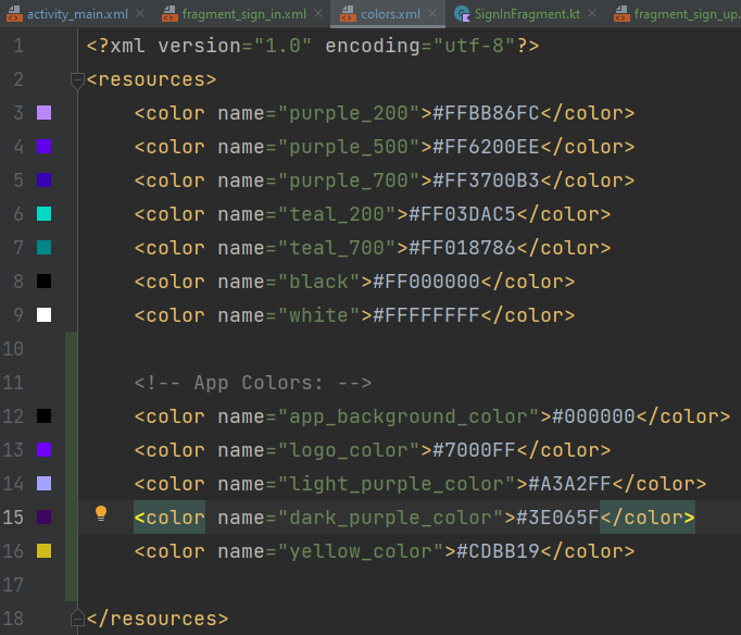Bu yüzden SignInFragment ve SignUpFragment'ta kod düzenlemelerini ayarlayalım:
