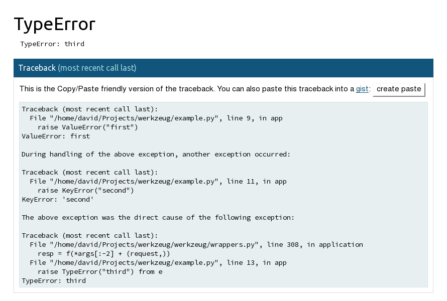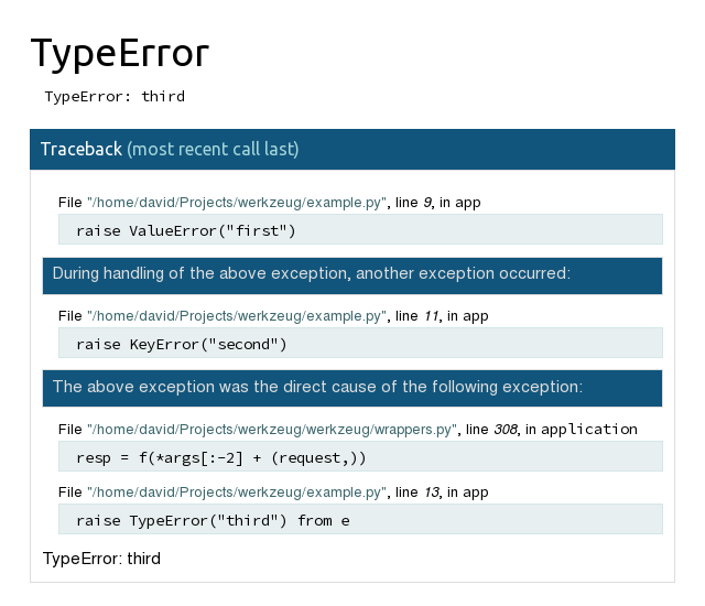 revert to showing only exception at top and bottom add render_text method don't prepend module for "builtins" remove handling for unsupported "raise string" use property as decorator use to_unicode and text_type compat