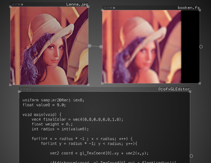 Each shader could be edited on the fly using ofxGLEditor.