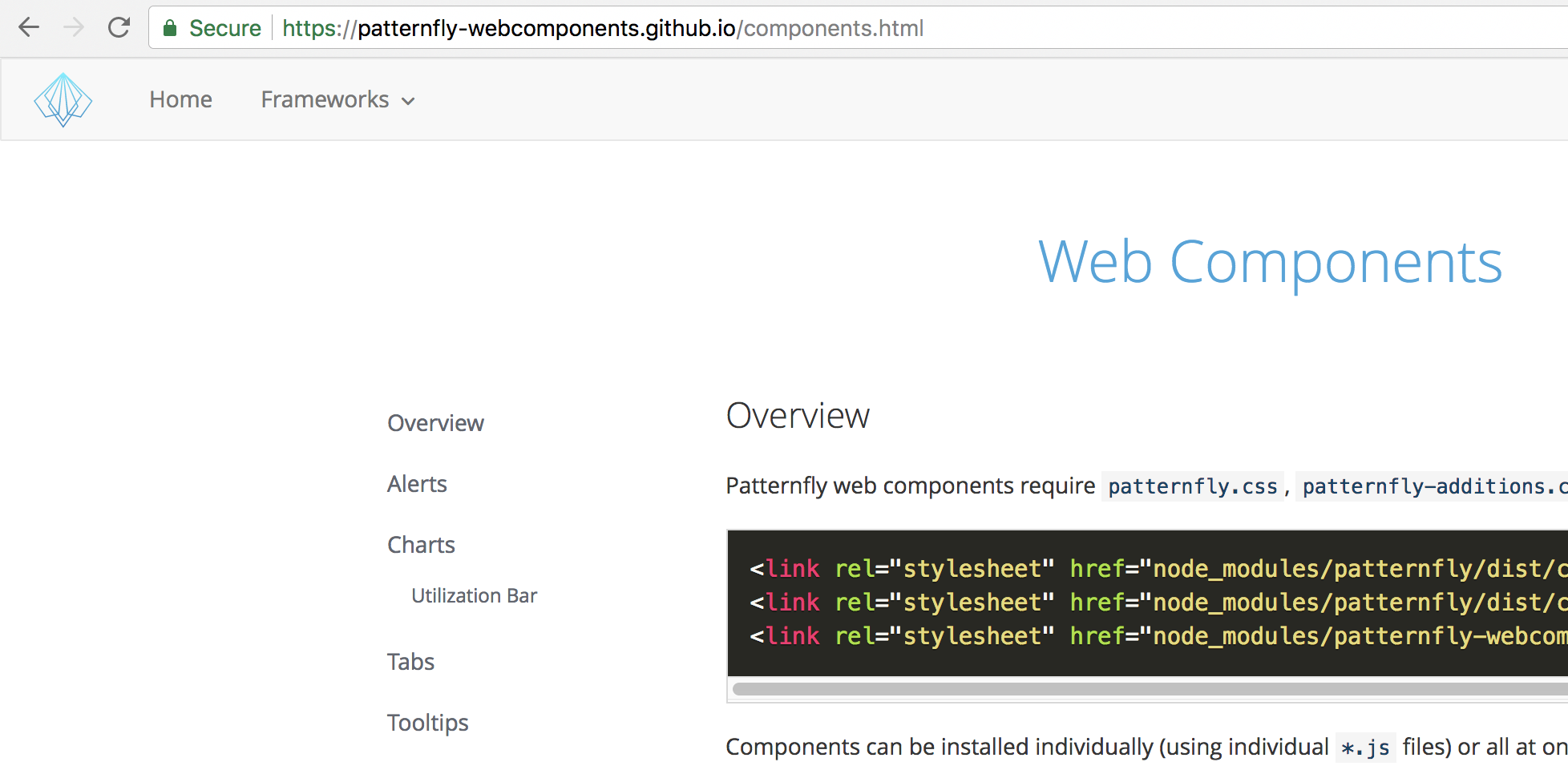 | <a href="https://patternfly-webcomponents.github.io/components.html">PatternFly WebComponents</a> |