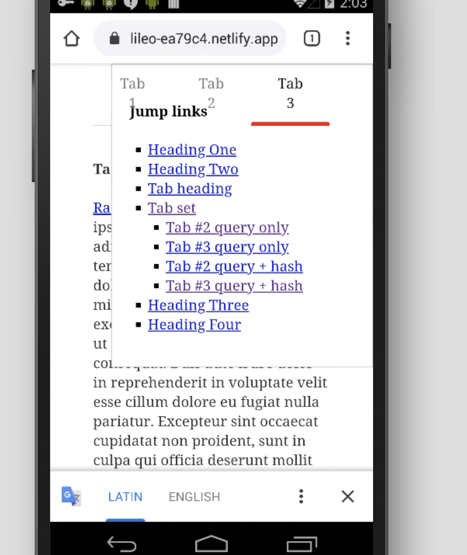 HASH ONLY | If I load this URL in Firefox https://deploy-preview-841--happy-galileo-ea79c4.netlify.app/elements/pfe-tabs/demo/hash.html#three