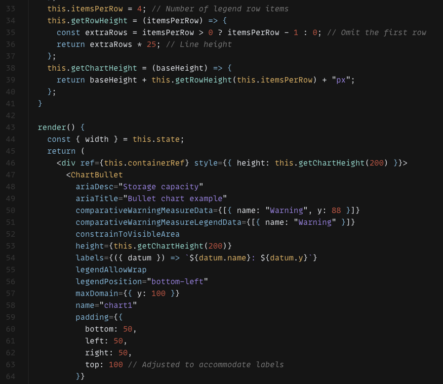 In general, the legendAllowWrap feature works well for a majority of cases. However, there was an edge case which a user included 20+ legend items. The problem was the user never increased the height of the chart's parent container, so the some wrapped legend items were hidden from view. That is, part of the SVG was cut off by the size restriction defined by the chart's parent container.