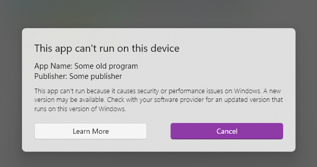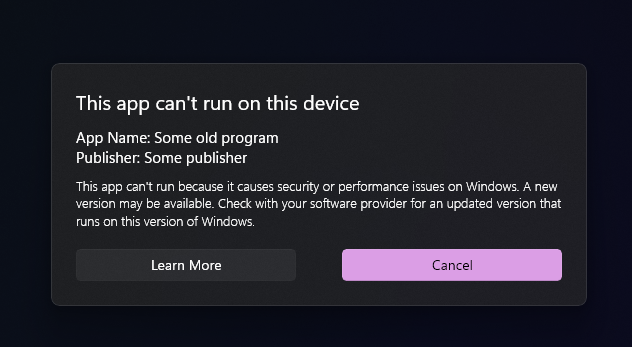 Just a little concept to make a Program Compatability Assistant dialog that actually looks good...cough cough Windows 11 Build 25276