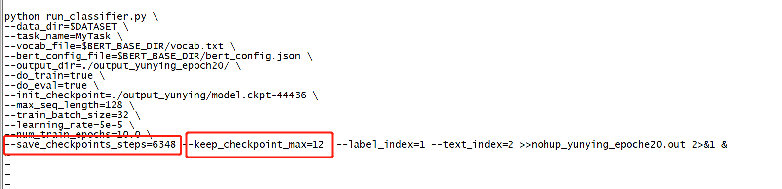 save_checkpoints_steps =int (训练样本数/batch_size)