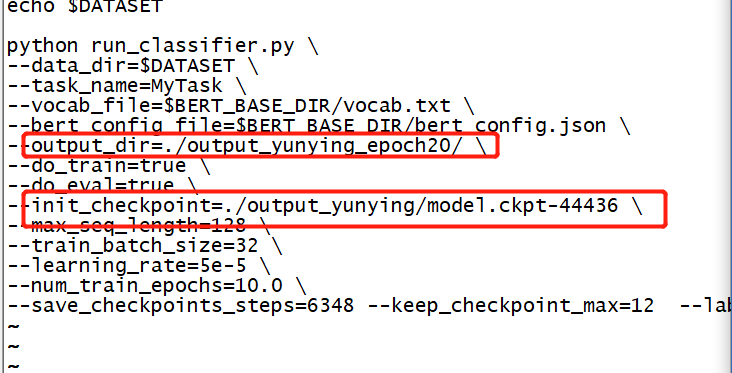 init_checkpoin改成你最新的模型结果,就是加载最新的模型结果,然后out_put重建一个文件