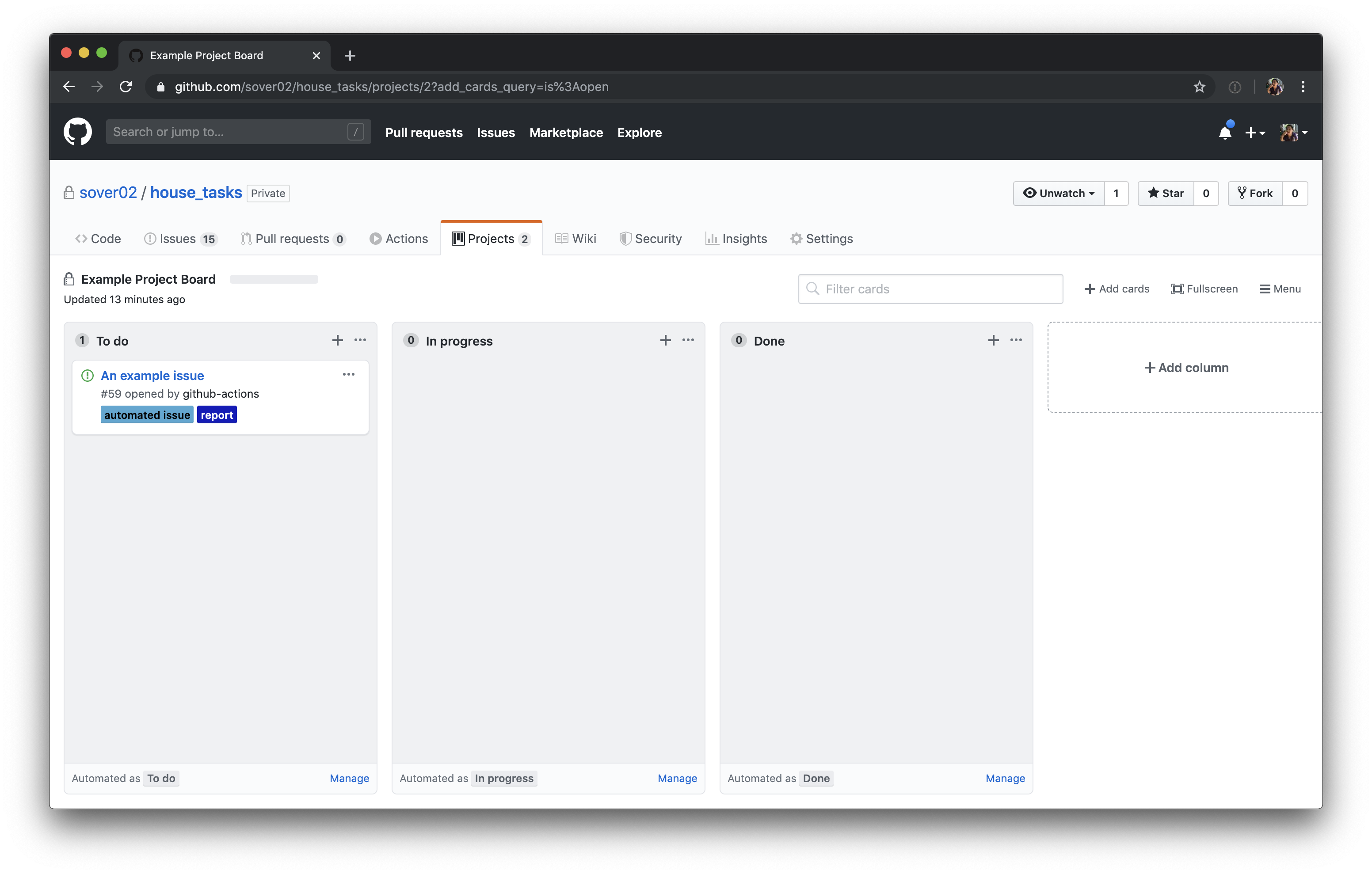 My use-case involved adding new issues to a project board, so I added the functionality. I hope it's useful for others that may have a similar case.