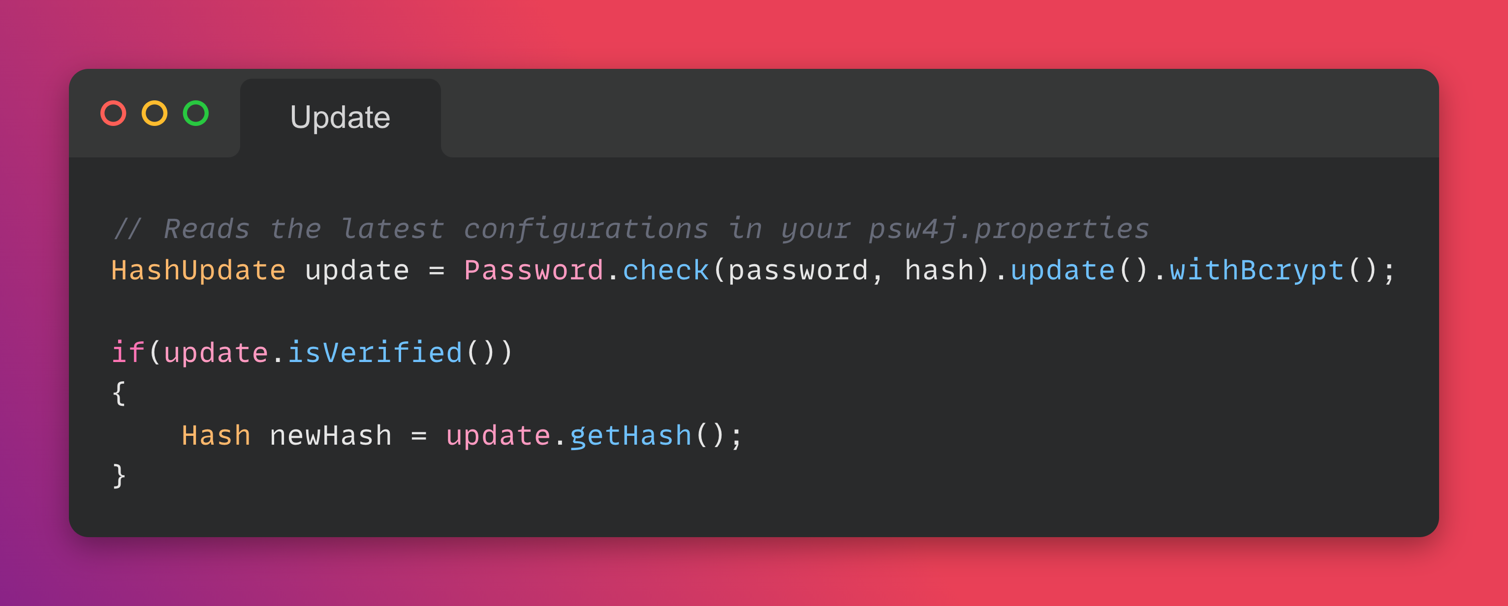 </dependency>Password4j provides three main features: password hashing, hash checking and hash updating.
