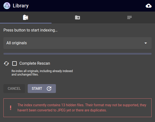 Since the index is constantly updated while scanning the library, the following warning should only be displayed when idle: