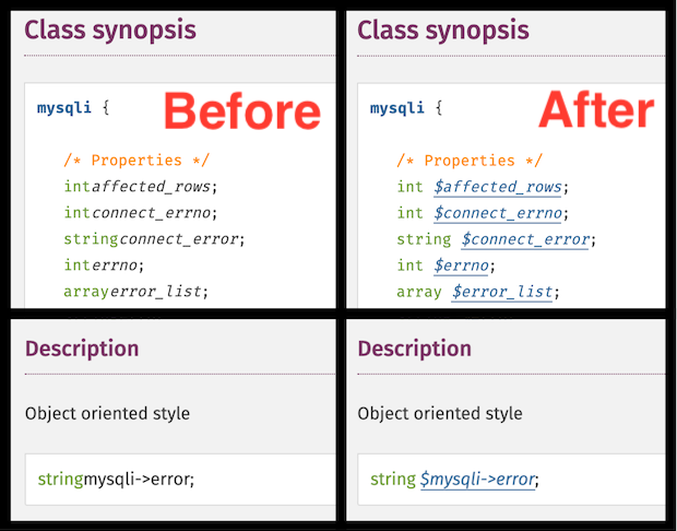 , though.The https://www.php.net/manual/en/mysqli.error.php for an example of the currently broken rendering.