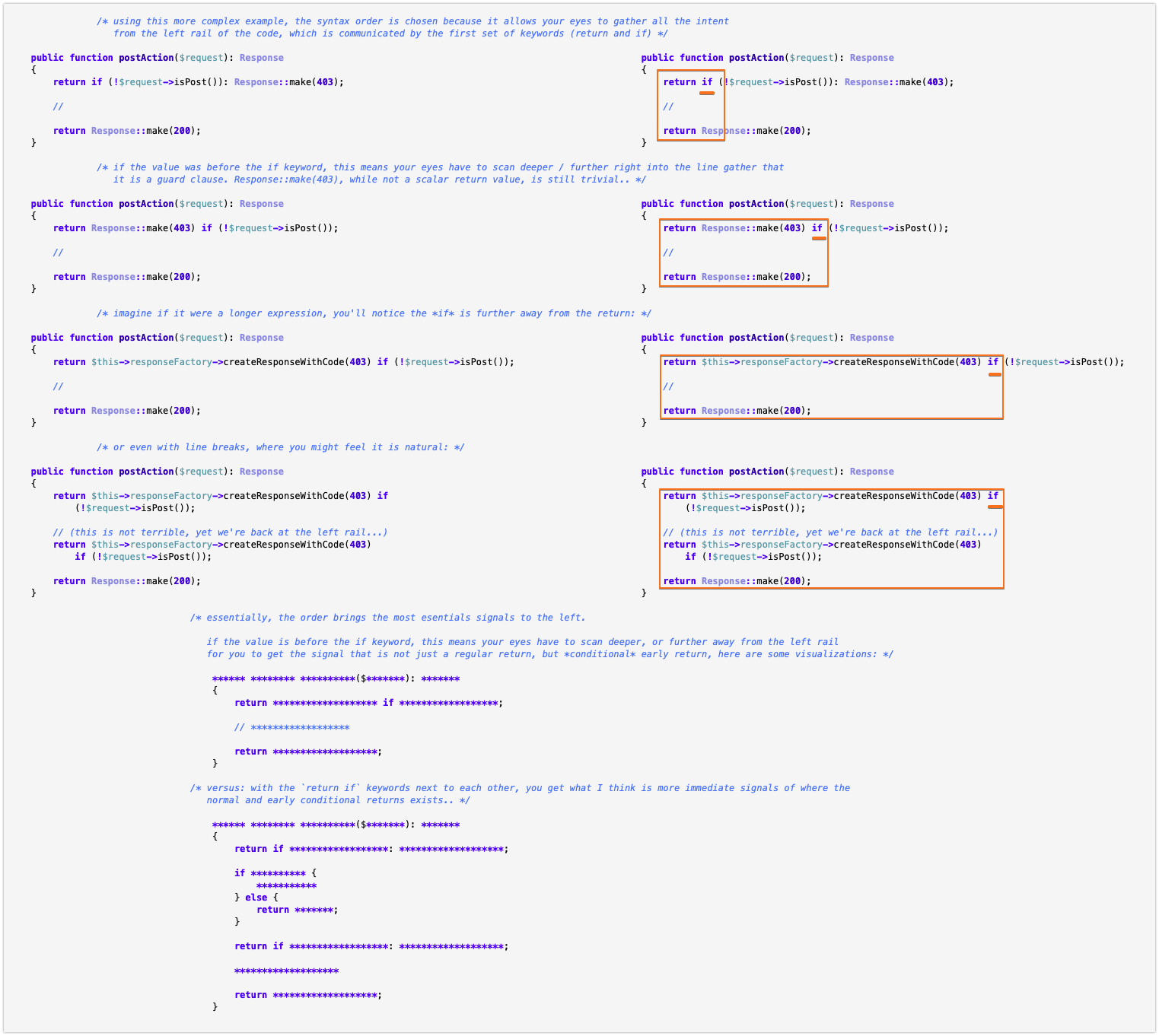 Even if these statements span multiple lines, this priority and order remains intact to a large degree. As mentioned in the https://externals.io/message/110107 thread, I am away this is syntactic sugar to some degree, but I feel as proposed, it adds a tremendous amount of value. |