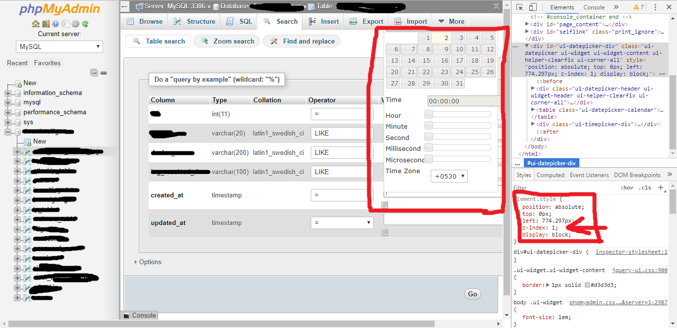 If number of columns in table is less, then if we select date field, we are not able to select month because of Z-index value is 1(css part).