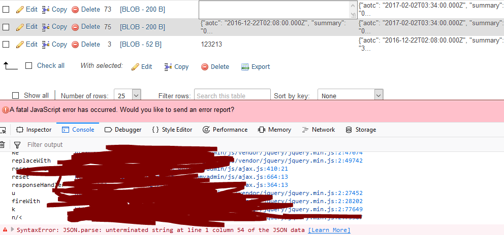 same too, the way to hide this error i set "Limit column characters" to 100, |