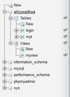I just spend an hour trying to solve why my Laravel project was working correctly without a specific table in the database that should have been migrated properly. I felt like an idiot when I discovered it was hidden but then I noticed extremely obscure eyes next to the tables, only slightly visible when hovering over a table in the left navbar. When a folder is hidden the only way to notice, without knowing you hidden something, is a somewhat less obscure eye next to the database name. But for someone that doesn't know his table is hidden it's not the first place to look.