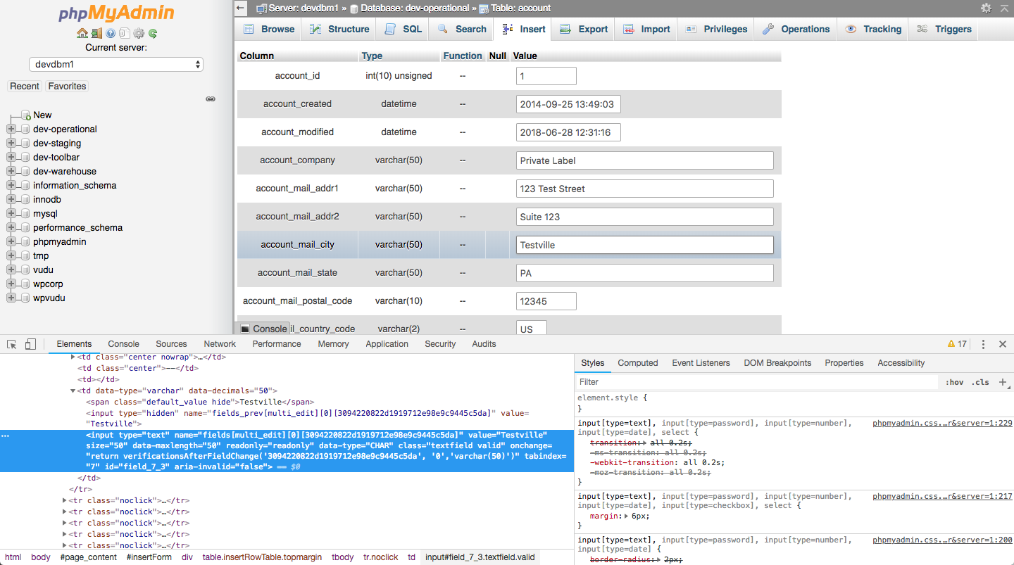 Ok, here is what privileges looks like (I am logged in as "shaun"). It seems that phpMyAdmin is not properly detecting my wildcard DB privilege. Like I mentioned before, I can make inline edits, but it doesn't think I have permission on the edit page. I verified that if I login as "root", the edit page shows properly. This setup used to work in older versions of phpMyAdmin. |