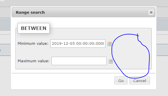 Select BETWEEN for rental_id operator, a dialog pops up.