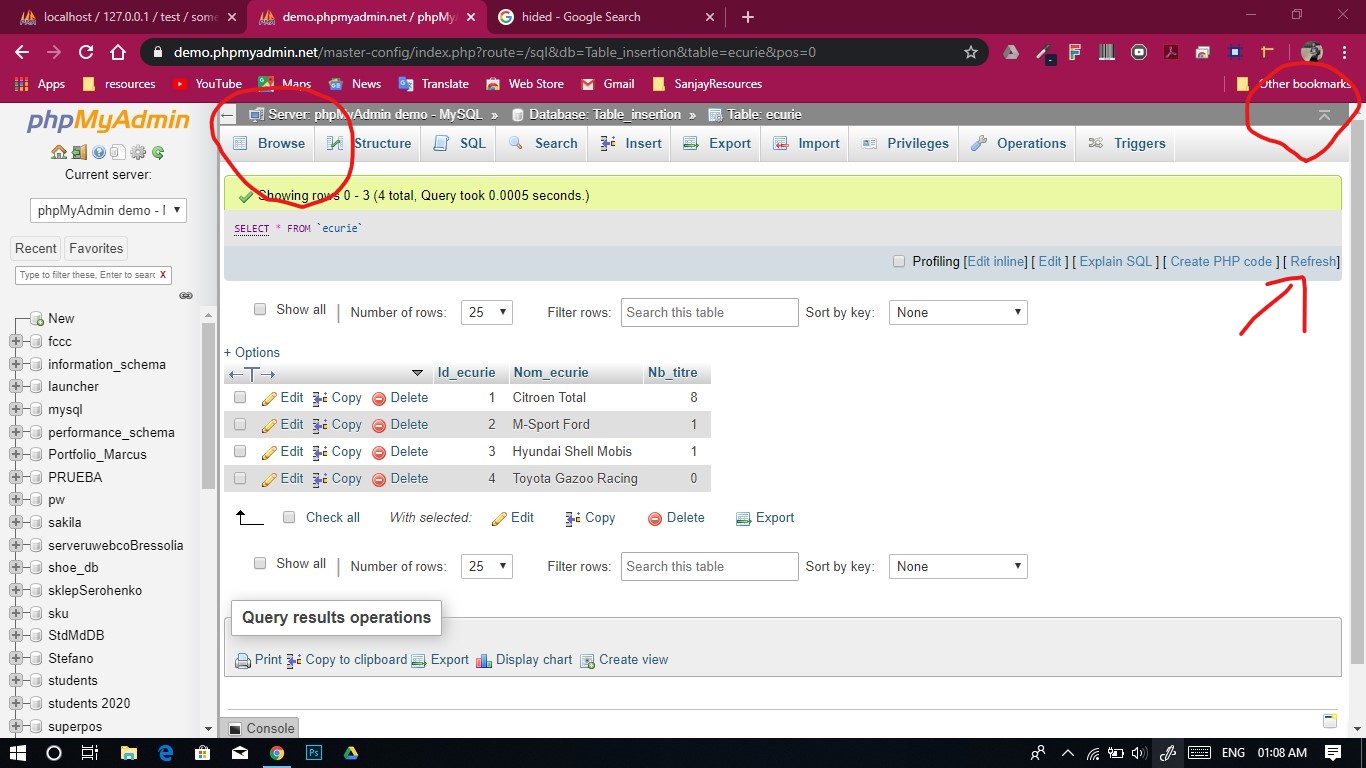Focus of active tab is lost by clicking refresh option provided by phpmyadmin. #15693