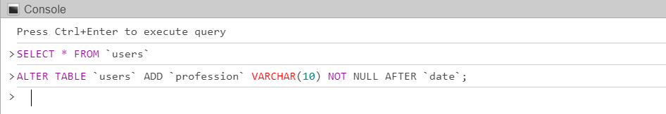 Page refreshes immedaitely back to structure so can't see the SQL that was entered after adding a new column