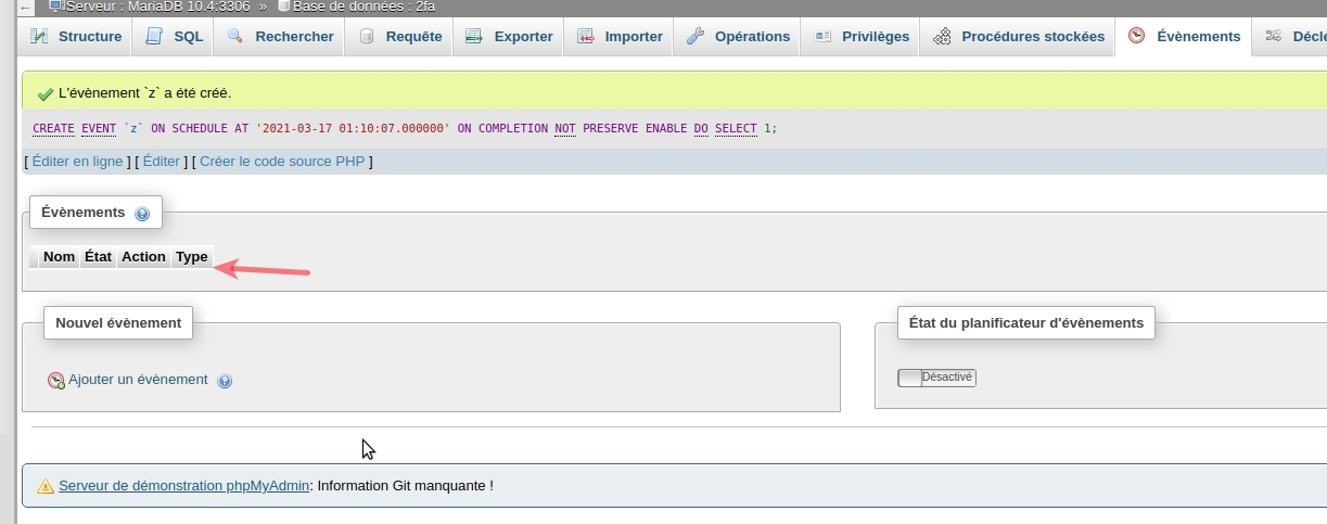 The event I created was in the past. Creating in the future still keeps the empty row but shows the data