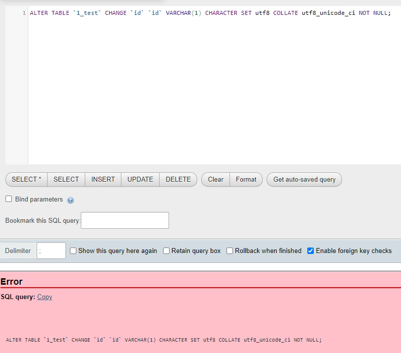 #1265 - Data truncated for column 'id' at row 1