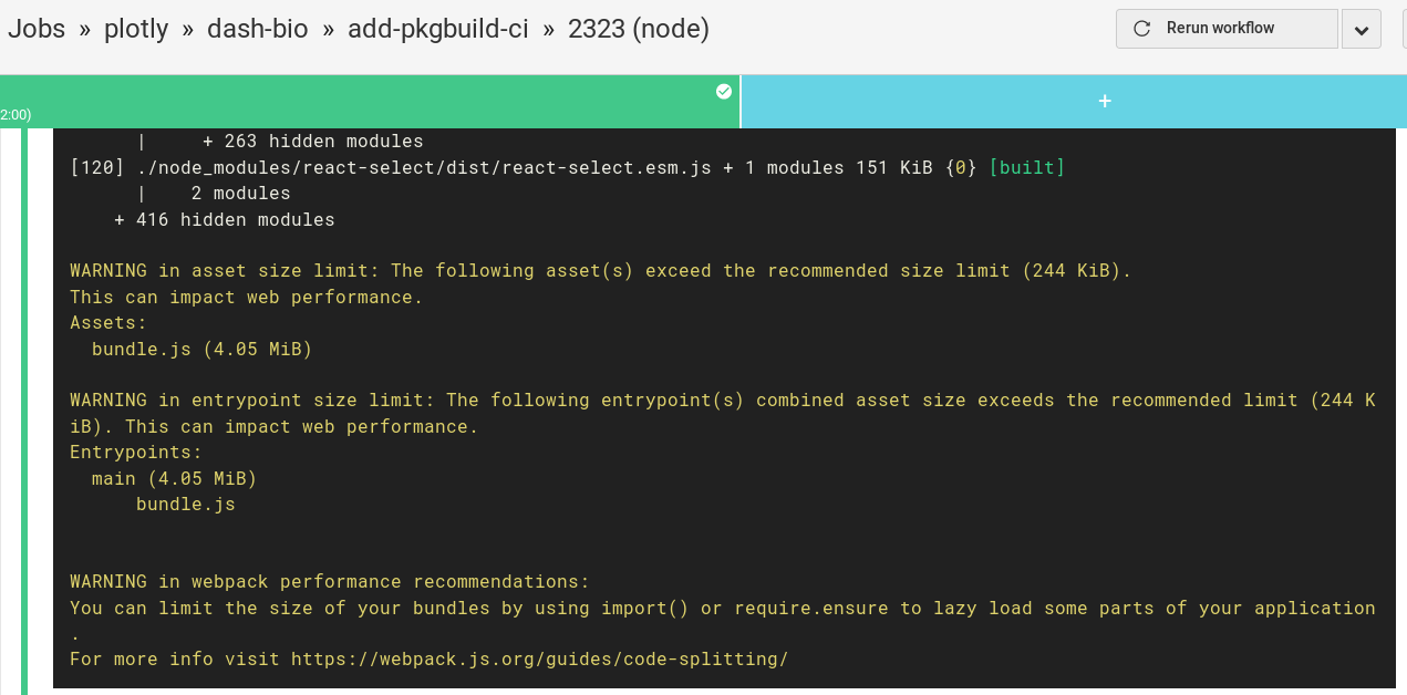 to the "node" job, which runs in a node.js environment.Ultimately, we may want to address the following warning: