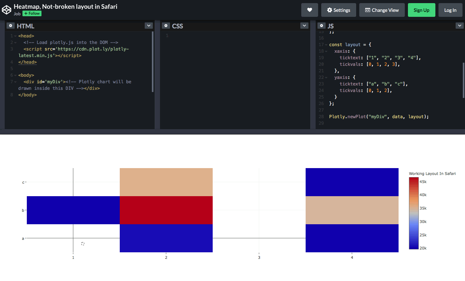 Steps to reproduce: - have a heatmap with a few `null` values - set a custom `tickvals` and `ticktext` array for the legend Broken heatmap legend: https://codepen.io/JobLeonard/pen/XWRaarG  Working heatmap legend: https://codepen.io/JobLeonard/pen/oNWGXop  It works fine in every other browser/platform that I've tested this on.