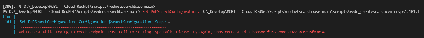 Today I had to re-use a script in which also Search Configurations are uploaded to Tenant or Site level. 2 weeks ago the script ran fine and today I have the error below... (nothing changed onb Script side :-()
