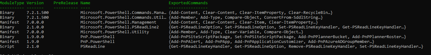 (you can retrieve this by executing Get-Module -Name "PnP.PowerShell" -ListAvailable)