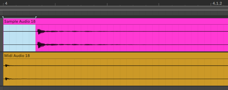 I'm just triggering a sample and MIDI instrument on the same step and recording the output of the Tracker and the MIDI instrument on separate channels in Ableton. Tracker and Ableton are both slaved to an external clock from the Expert Sleepers FH-2. Using the MIDI clock sync delay I can shift the two signals around together and I can get one or the other on the grid, but the sample is always about 20ms later than the external hardware MIDI instrument.