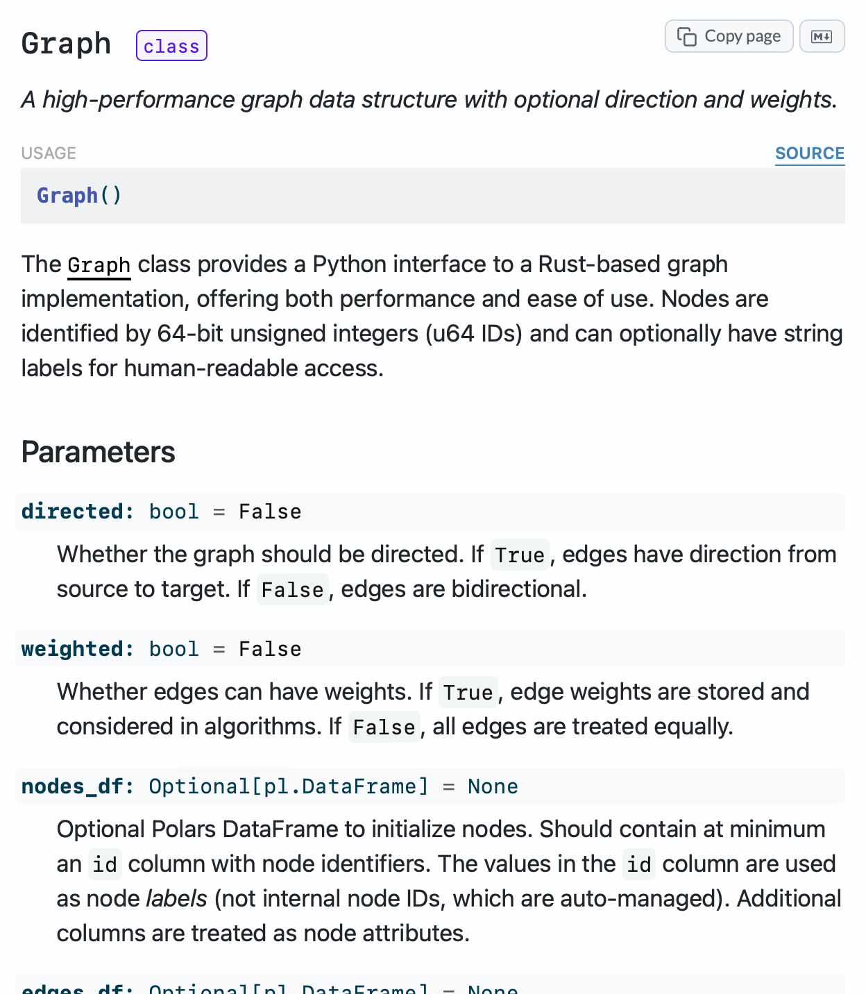 Classes, functions, methods, and attributes are automatically organized into categorized sections. Large classes get dedicated method pages. Every item links back to source code on GitHub.