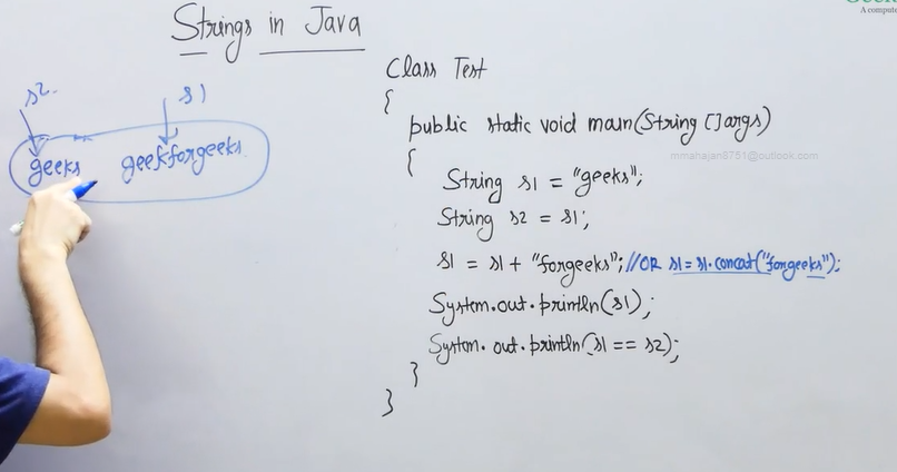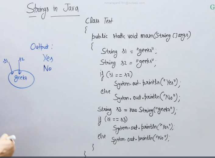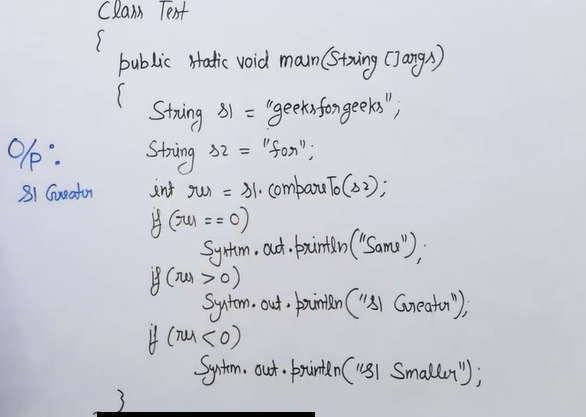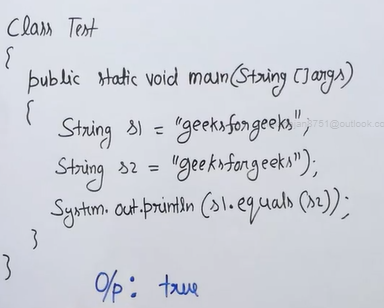 s1 == s1 --> It compare whether instance s1 & s2 belong to same memory aor not. for content comparison we have equal and compare method