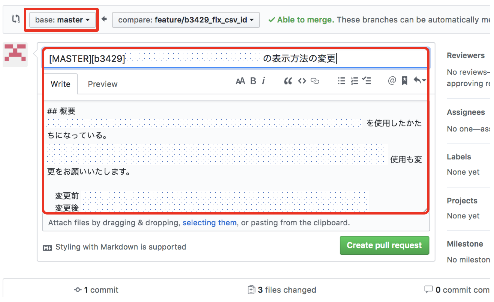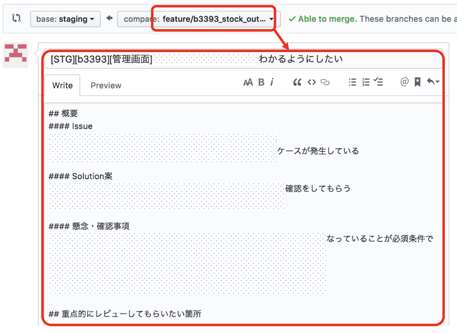- ブランチ名には、backlogチケットIDをつけている( 例:b1234_fix_hoge )