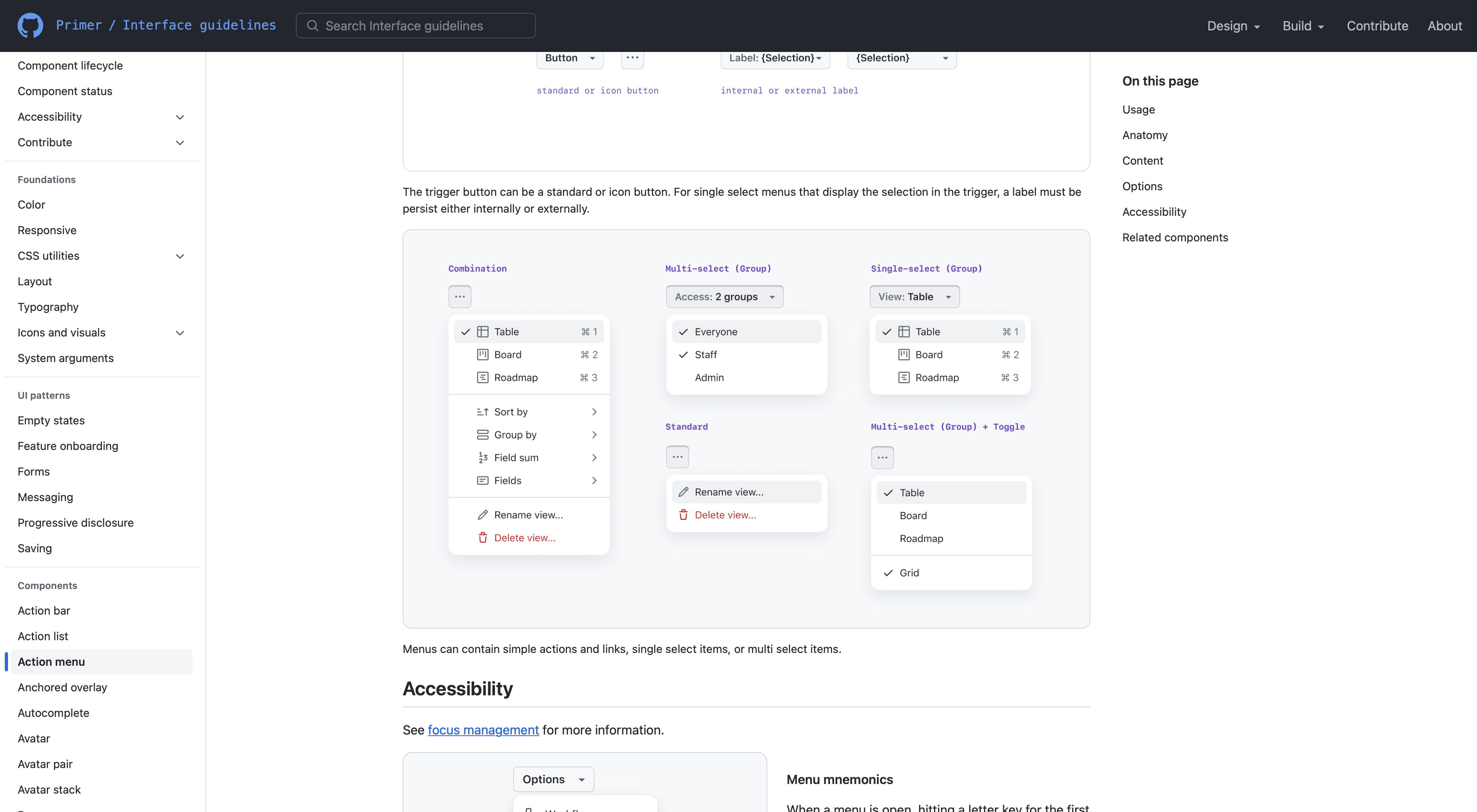| [Primer React implementation](https://primer.style/react/ActionMenu) | ||