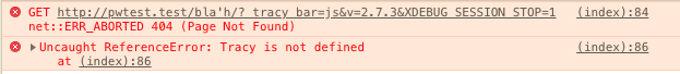 - Note that the Tracy bar doesn't load and you get these errors: