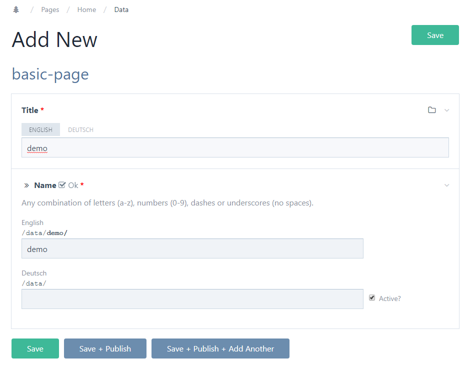 When you disable multilang support for a template and then add a new page of that type the GUI shows multilang fields for title + page name. Once the page is saved it shows only single-language fields.