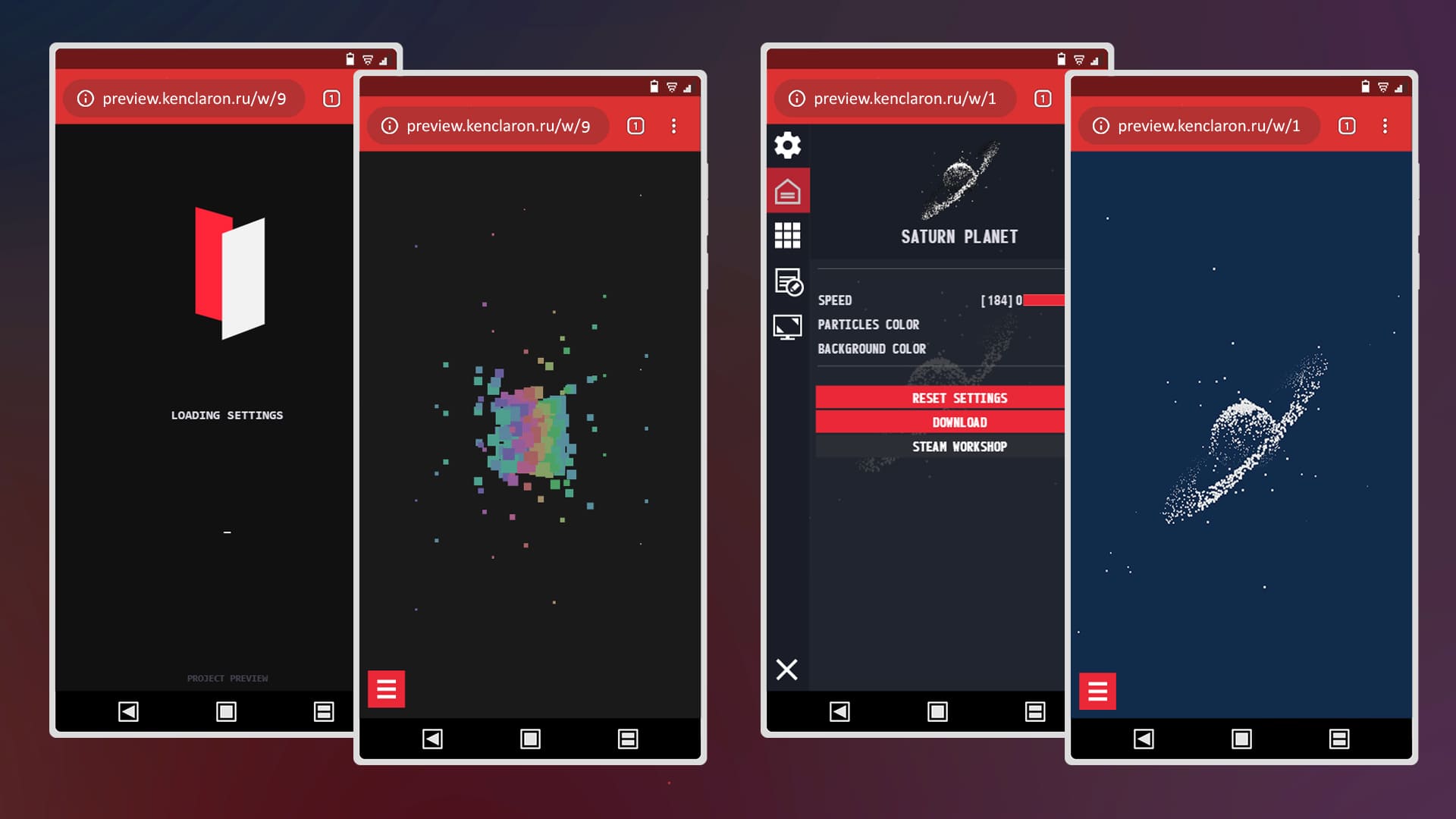Case: Create web-analog of Wallpaper Engine with support Desktop and Mobile platforms using HTML/CSS/JS/PHP.